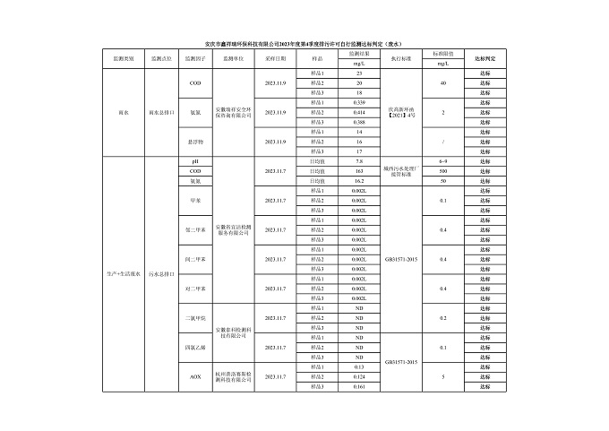 安慶市鑫祥瑞環(huán)??萍加邢薰?023年第4季度排污許可自行監(jiān)測公開